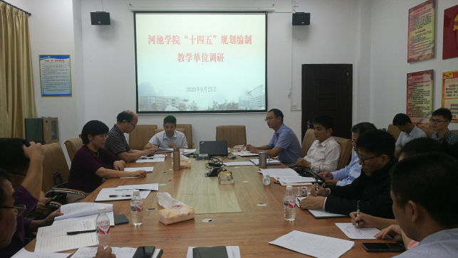 2020年9月21-29日,副校长钟宏桃带领教务处、科技处、人事处、国资处、发规处等处室负责人,深入全校13个教学单位开展“十四五”规划编制专题调研。