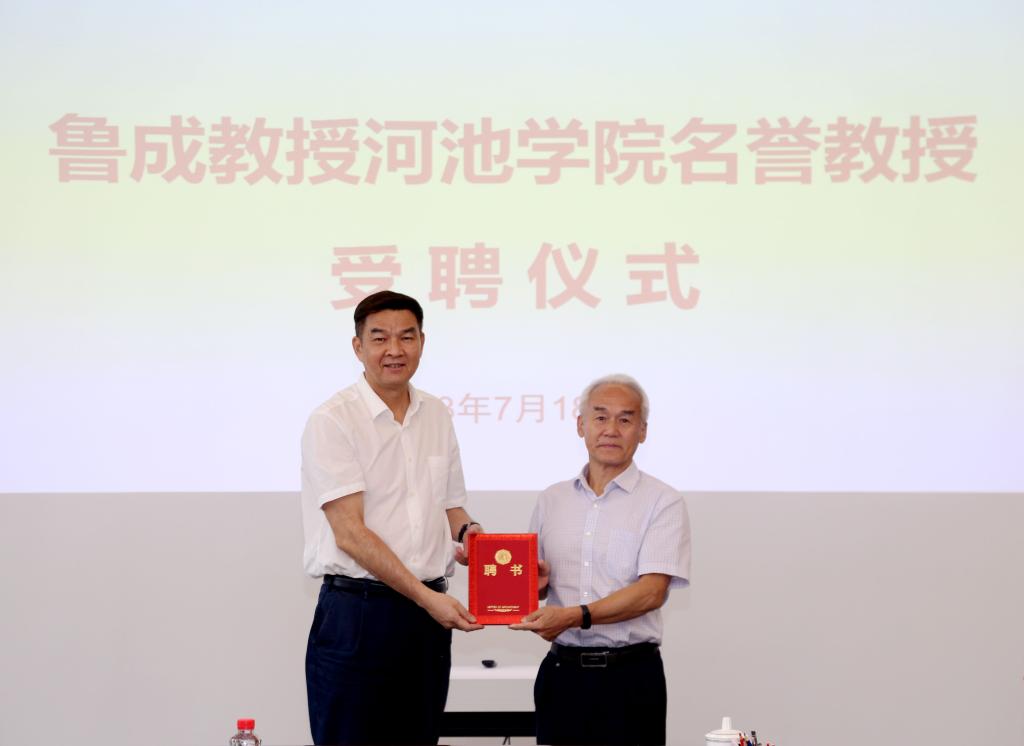 7月18日下午,国家蚕桑产业技术体系原首席科学家、西南大学鲁成名誉教授受聘仪式在bat365实训楼1507会议室隆重举行,学校党委书记韦安光出席并为鲁成教授颁发聘书。受聘仪式由副校长贺卫国主持。