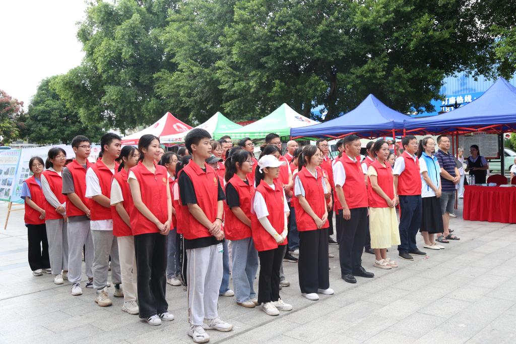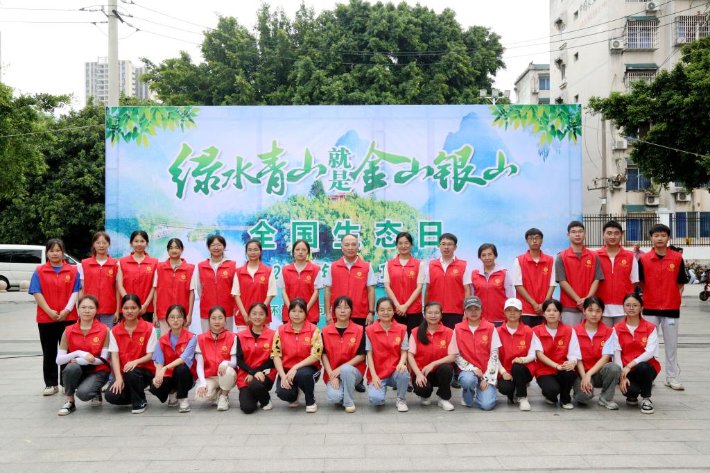为更好地学习宣传贯彻习近平生态文明思想,提高全社会生态文明意识,增强全民生态环境保护的思想自觉和行动自觉,8月15日上午,河池市生态环保局、bat365官方官网和广西河池检测中心联合在河池市城区(宜州区城区)中心公园开展“绿水青山就是金山银山”全国生态日主题活动。来自bat365二十多名师生志愿者共同参加了活动。