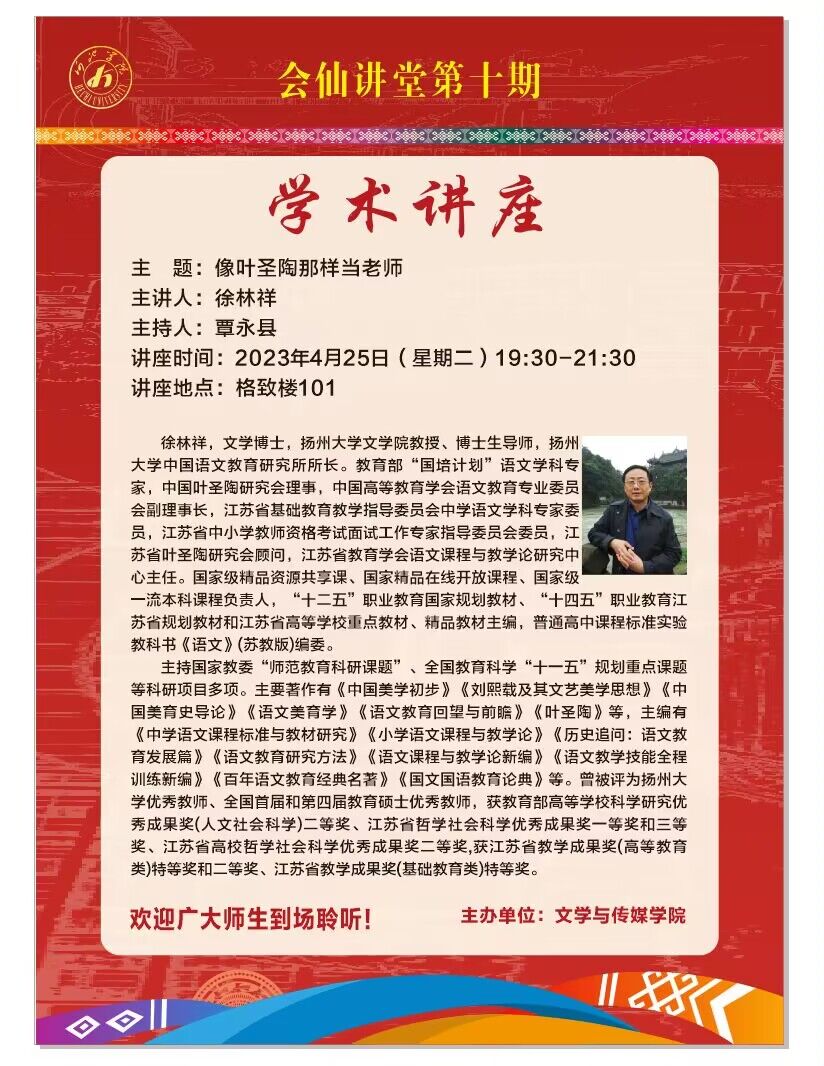 【会仙讲堂】学术讲座:像叶圣陶那样当老师