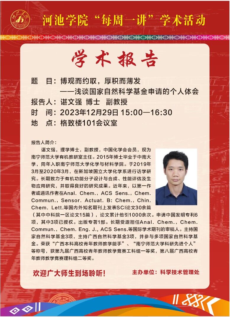 【学术报告】博观而约取,厚积而薄发——浅谈国家自然科学基金申请的个人体会