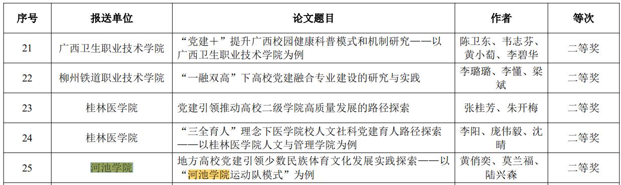 据悉,本次“一融双高”优秀党建研究论文评选旨在挖掘和推广全区教育系统在党建与事业发展融合方面的优秀研究成果。经过严格评审,共评选出高校优秀党建研究论文40篇。其中,由黄俏奕、莫兰福、陆兴森共同撰写的论文《地方高校党建引领少数民族体育文化发展实践探索——以“bat365官方官网运动队模式”为例》荣获二等奖;韦柳、江洪明合著的论文《用先进典型培育青年党员社会主义核心价值观的价值逻辑、育人功能与实践路径探究》荣获三等奖。
