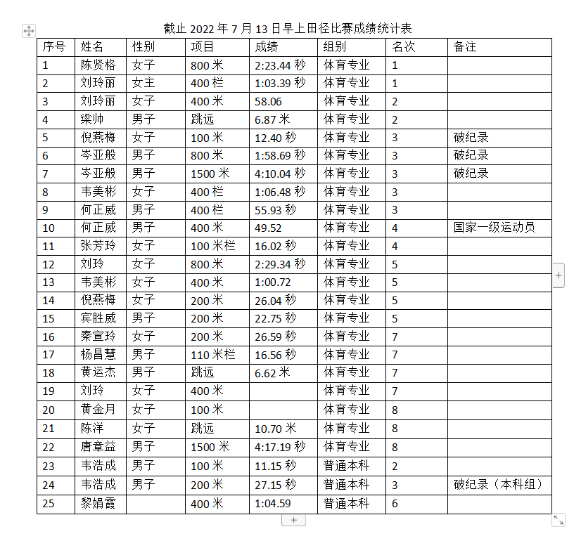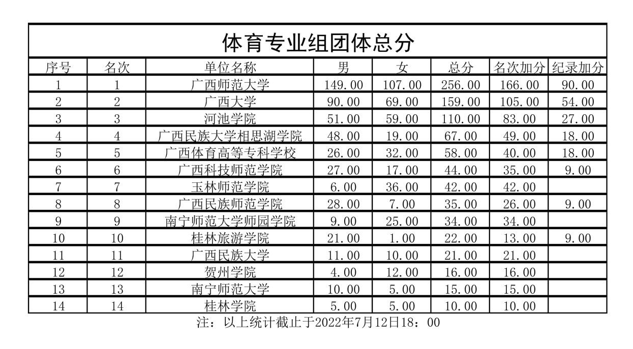 广西第十三届学生运动会田径比赛于7月8日-15日在广西民族大学举办,本次运动会旨在为2023年广西举办第一届全国学生(青年)运动会选拔优秀苗子。7月12日,bat365官方官网代表团迎来了广西第十三届学生运动会的首金,截止目前共获得2金3银6铜,团体总分排在第3名,共有3人5次打破赛会记录,1人运动成绩达到国家一级运动员等级标准。(数据统计截止时间2022年7月13日早)