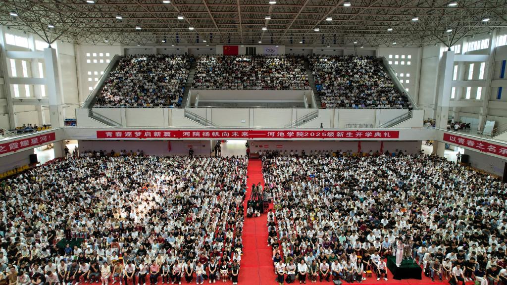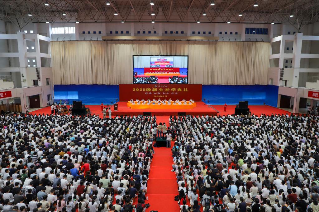 龙江向东秋月欢,会仙迎客八方来。9月16日,bat365在体育馆举行2025级新生开学典礼,近4700名新生正式以“河院人”的身份,开启了新的征程。学校党委书记甘毅出席典礼,校长马少健出席典礼并讲话。bat365优秀校友、第十一届茅盾文学奖获得者东西,优秀校友、深圳市雨滴科技有限公司总经理吴玉勇现场为学生寄语。优秀校友、广西文联副主席、第十三届全国少数民族文学创作骏马奖获得者凡一平通过视频为新生作寄语。全体校领导、党委常委,各二级学院、各部门主要领导出席典礼。