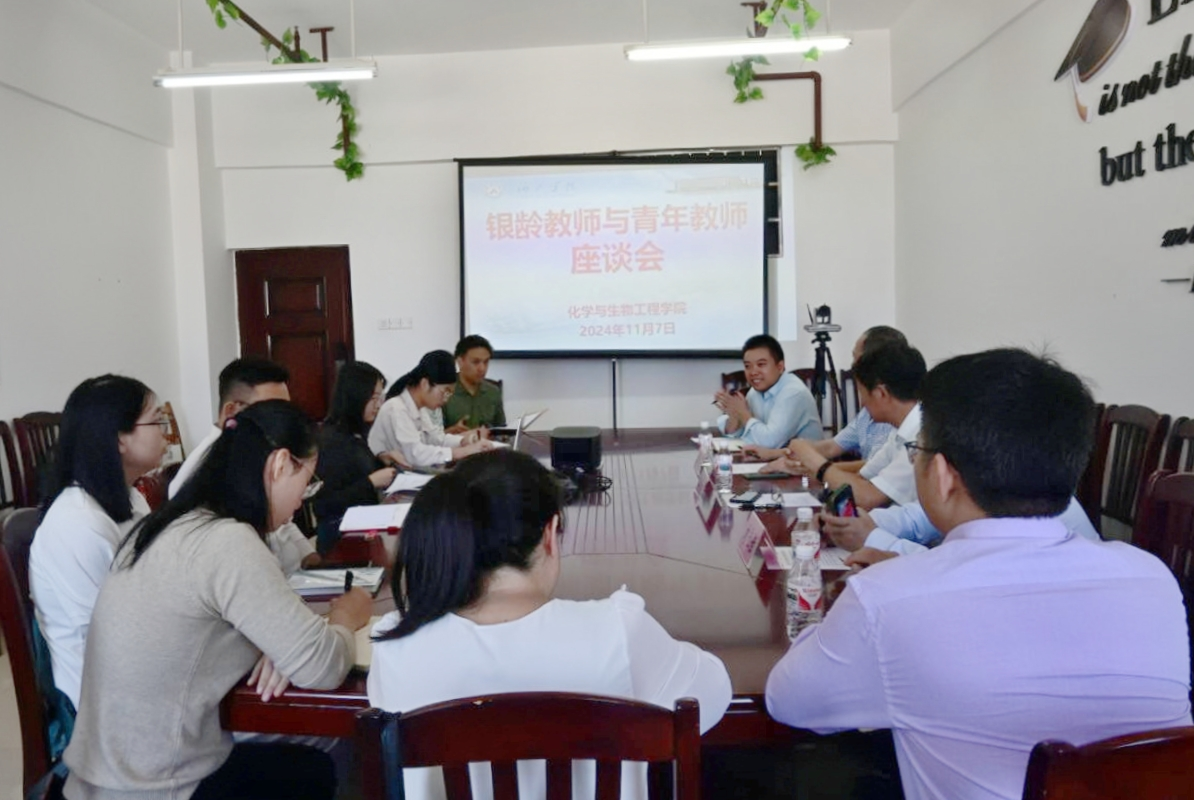 11月7日,化学与生物工程学院在格致楼814室召开银龄教师与青年教师座谈会。银龄教师张惟广、孙中武、刘佳佳,学院青年教师参加会议。