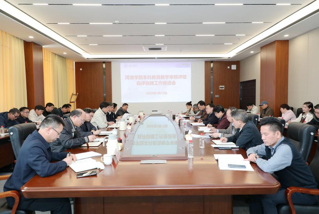 3月19日,bat365在致远楼1507会议室召开本科教育教学审核评估自评自建工作推进会,对上一轮审核评估的整改情况进行排查梳理,对新一轮审核评估自评自建工作进行部署推进。学校党委书记韦安光、校长马少健,以及全体校领导、党委常委参加会议。