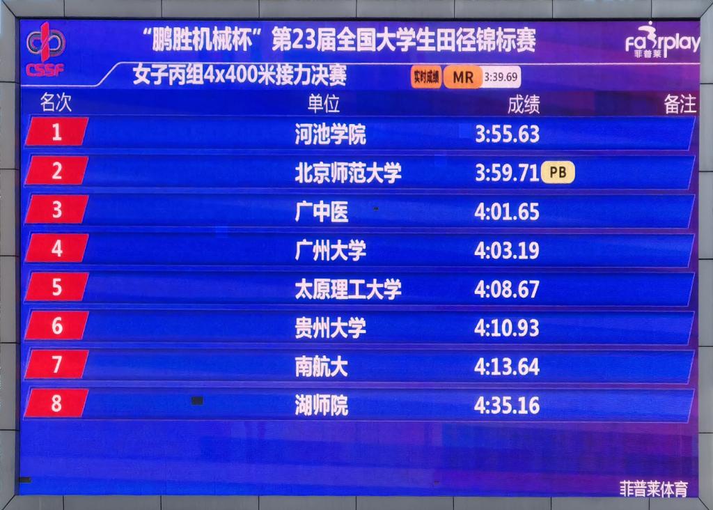 在2016、2019年两届广西学生运动会体育专业组比赛中,分别荣获团体总分第三名和第二名的优异成绩,特别是在今年8月全国第23届大学生田径锦标赛上,我院运动员勇夺女子4x400米接力冠军,令人震撼,引发社会极大关注。