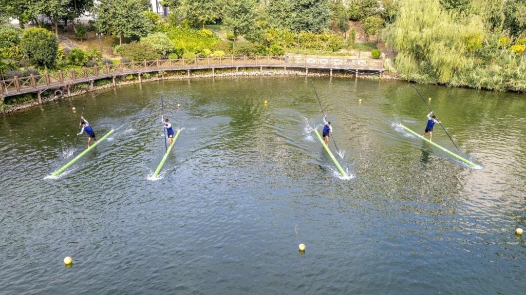 学院积极深化校地合作,全力推动地方体育事业高质量发展。近年来,学校独竹漂队多次受邀前往环江“分龙节”、河池园博园、巴马瑶族自治县、宜州流河寨景区等地进行水上表演,为吸引游客、增加客流量发挥了积极作用。学院充分发挥场地和人才资源优势,在2021年和2022年先后承办了河池市宜州区 “健康杯” 中小学生篮球赛、足球赛和田径运动会等赛事;2023 年为河池市财政局等单位举办少数民族传统体育项目培训班;2023年12月,在宜州区第六小学开展“民族传统体育毽球进校园工程”活动,掀起全体师生参与毽球的热潮,为适应区域民族传统体育发展,弘扬中华传统体育文化,促进大中小学体育教育联动起到积极地推动作用。相关活动被《河池日报》专题报道;2024年举办河池市校园啦啦操示范套路教练员培训班;2025 年承办河池市中小学生啦啦操比赛;2025年暑假期间举办独竹漂公益培训班,吸引了四十余名小学生参加培训活动,引起当地社会关注。学院在2013-2016年度和2017-2020年度两次荣获全国 “群众体育先进单位”荣誉称号,学院教师3人次荣获“全国群众体育先进个人”荣誉称号。(体育学院供稿)