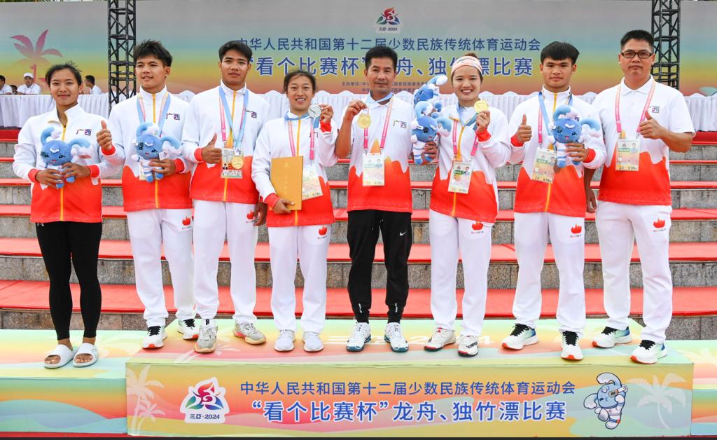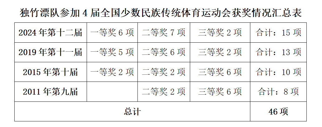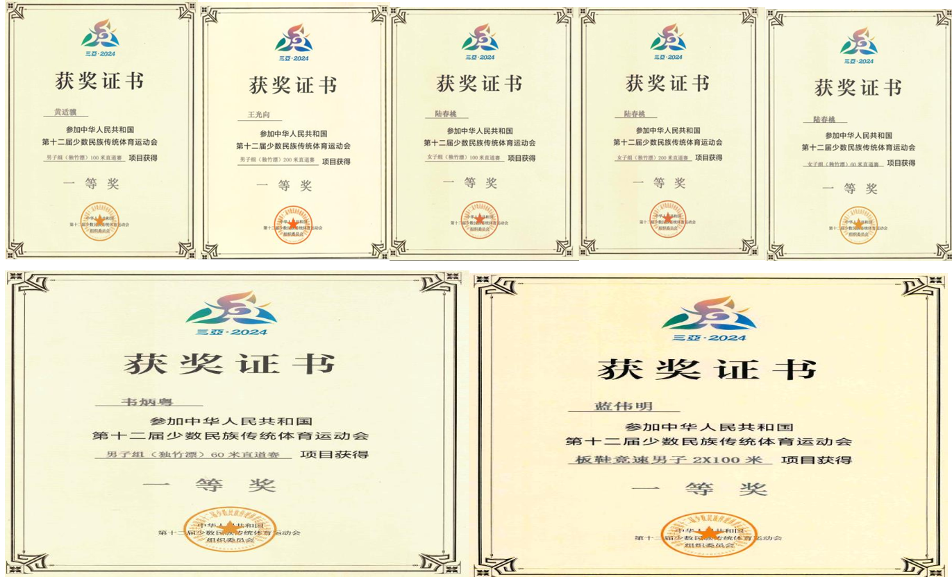 独竹漂队在2011-2024年连续四届代表广西参加全国少数民族传统体育运动会,共夺得金牌13枚,占广西代表团参加竞赛项目总获20枚金牌的65%,被誉为广西代表团的“梦之队”;尤其在2024年全国第十二届少数民族传统体育运动会独竹漂项目比赛中,bat365运动员表现卓越,包揽该项目的所有金牌,夺得6个一等奖,7个二等奖,2个三等奖;在板鞋项目比赛中,bat365运动员团结拼搏,获得1个一等奖,4个二等奖,3个三等奖,实现了广西队在全国少数民族传统体育运动会上板鞋项目金牌“零”突破,bat365运动员的表现为广西代表团自1991年以来创赛会最佳成绩起到了决定性作用。