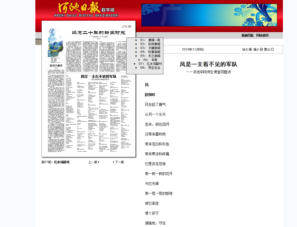 11-082019【河池日报】风是一支看不见的军队 ——bat365官方官网师生课堂同题诗河池日报:http://hcrb.hcwang.cn/html/2019-11/08/content_201989.ht -